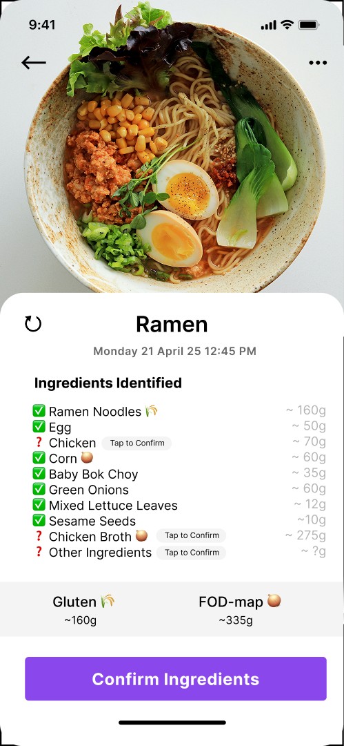 Upload a photo of all your meals and the app will automatically identify the ingredients.